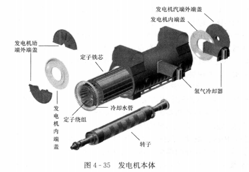 (3)發(fā)電機本體。在發(fā)電廠中,同步發(fā)電機是將機械能轉(zhuǎn)變成電能的唯一電氣設備。因而將一次能源(水力、煤、油、風力、原子能等)轉(zhuǎn)換為二次能源的發(fā)電機,現(xiàn)在幾乎都是采用三相交流同步發(fā)電機。
