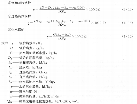 說明:(1)當使用鍋爐系統(tǒng)以外的熱源對燃料和空氣進行加熱時,來熱量QwL。(kj/kg或kj/m3)應測算并計入鍋爐輸入熱量中。