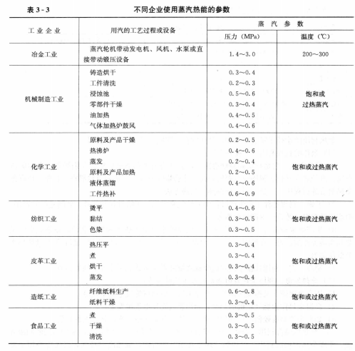 在工業(yè)企業(yè)中,中、低參數(shù)的熱能使用最廣泛,見表3-3。