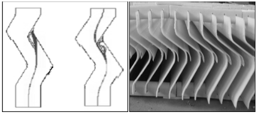 圖6:不同粒徑霧滴在除霧器中的湍流效應及除霧器實物圖