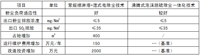 以600兆瓦機組超低排放改造為例,本技術與常規(guī)脫硫噴淋塔+濕式電除塵超低排放技術路線相比數(shù)據(jù)匯總如下: