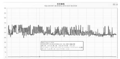 同時(shí),為了研究濕式電除塵器出口粉塵排放與機(jī)組負(fù)荷變化的關(guān)系,查閱了#1機(jī)組投運(yùn)后3個(gè)月的機(jī)組負(fù)荷與粉塵排放濃度的歷史曲線(8月1日-11月1日),見(jiàn)圖2。