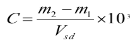 式中:C—標(biāo)準(zhǔn)狀態(tài)下干燥煙氣的含塵濃度,mg/m3;m1—采樣前的濾筒重量,mg;m2—采樣后的濾筒重量,mg。Vsd的計(jì)算見(jiàn)公式6-4。