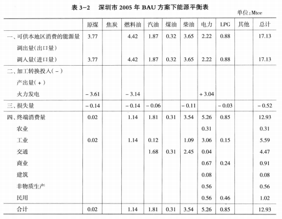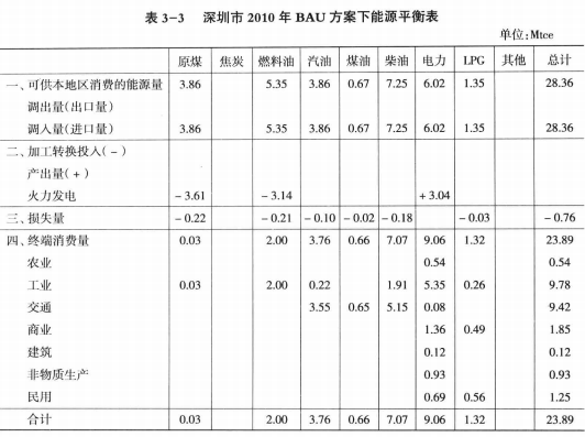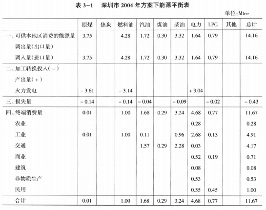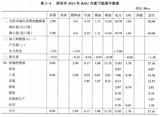 3.3.1深圳市BAU方案下2004-2020年能源平衡表描述