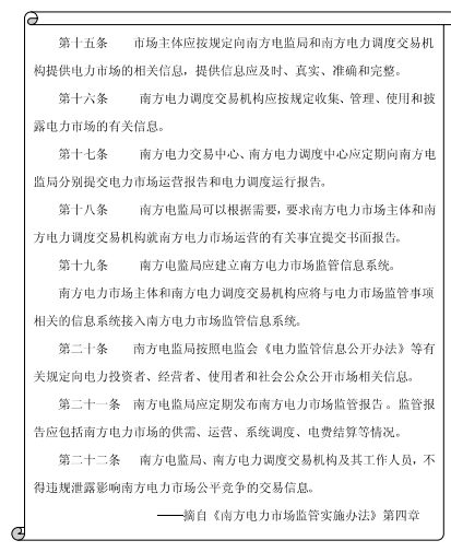 1、市場(chǎng)成員和調(diào)度交易中心定期或者根據(jù)監(jiān)管機(jī)構(gòu)的要求向監(jiān)管機(jī)構(gòu)提供數(shù)據(jù)和信息;