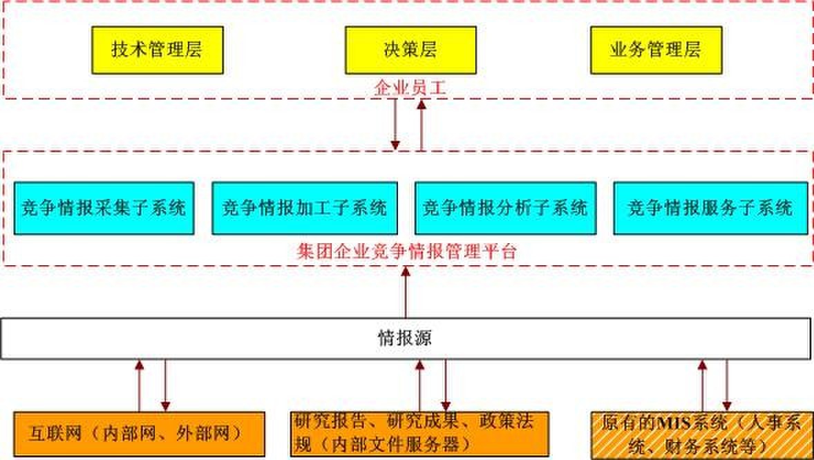 建立集團競爭情報系統(tǒng)的建設具有明確的針對性,重點滿足企業(yè)決策層的情報需求,同時也為行政管理層、業(yè)務管理層和廣大員工提供信息支持和服務,將本系統(tǒng)建設成為企業(yè)競爭力工具的重要組成部分。