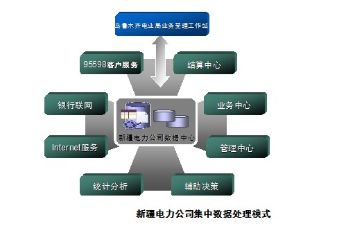 烏魯木齊電業(yè)局則適合采用本局集中的模式,因?yàn)閷?duì)大型業(yè)務(wù)處理系統(tǒng),如果采用分布式的結(jié)構(gòu),隨著機(jī)構(gòu)和部門的變動(dòng)及業(yè)務(wù)系統(tǒng)不斷擴(kuò)充,多個(gè)數(shù)據(jù)庫就會(huì)像蜘蛛網(wǎng)一樣互相連接在一起。大量的數(shù)據(jù)傳遞和交換必然大大降低了系統(tǒng)的可靠性、增加了系統(tǒng)的維護(hù)量和維護(hù)難度,給營銷系統(tǒng)的發(fā)展和建設(shè)帶來災(zāi)難。