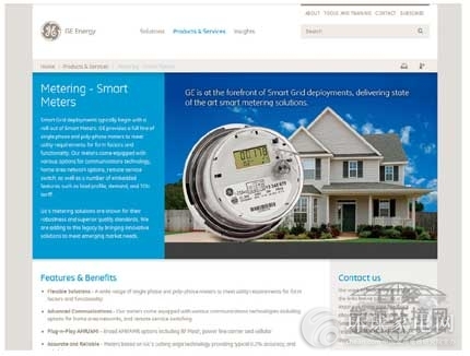 美國通用電氣(GE)公司電力業(yè)務(wù)部門“GE能源(GEEnergy)”的主頁。照片為GE的智能電表。