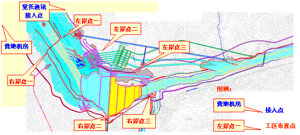 該系統(tǒng)中的圖像信息傳輸和記錄均采用先進(jìn)的數(shù)字傳輸技術(shù),并充分應(yīng)用豐富的計算機網(wǎng)絡(luò)資源,使用基于計算機網(wǎng)絡(luò)的多媒體監(jiān)控技術(shù),將多媒體監(jiān)控的控制和管理,及監(jiān)控視頻圖像的處理全部納入計算機網(wǎng)絡(luò)統(tǒng)一管理。施工區(qū)監(jiān)控點及接入點布置圖如下: