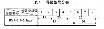 阻燃電纜的阻燃等級不低于A級,阻燃電線的阻燃等級不低于B級.在實(shí)際使用過程中主要采用不同的導(dǎo)線型號來對應(yīng)阻燃等級,并形成有效的物料規(guī)劃(見表1);第三,在安裝設(shè)計(jì)中開關(guān)、插座等安裝以使用習(xí)慣與適應(yīng)性為設(shè)計(jì)宗旨。在該要求的指導(dǎo)下,規(guī)范了開關(guān)的標(biāo)準(zhǔn)高度為沿地1.3 m,距離門邊0.2 m,普通插座的標(biāo)準(zhǔn)高度為下沿距地0.3 m,但熱水器插座、空調(diào)插座、開水間插座等都應(yīng)根據(jù)現(xiàn)場情況配合室內(nèi)裝修安裝。此種考量充分地考慮了后續(xù)室內(nèi)裝修可能帶來的富??臻g,并考慮了業(yè)主的實(shí)際使用習(xí)慣,以滿足大部分人的實(shí)際需求為目標(biāo)。