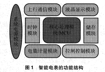 智能電表由核心處理模塊、上行通信模塊(NB - IOT)、電能計(jì)量模塊、時(shí)鐘模塊、存儲(chǔ)模塊、拉閘控制模塊縱及電源模塊等主要模塊組成,功能結(jié)構(gòu)框圖如圖1所示。