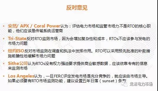大家可以看到各種討論,有的說要有的說不要,其中比較激烈的是,如果做市場(chǎng)監(jiān)測(cè),是否是把FERC的執(zhí)法權(quán)力下放?這是很敏感的一個(gè)問題。大家可以看到當(dāng)時(shí)有很多的反對(duì)意見。美國(guó)電力市場(chǎng)初期,除了經(jīng)濟(jì)上的爭(zhēng)論,政治上的爭(zhēng)論一樣也很多。