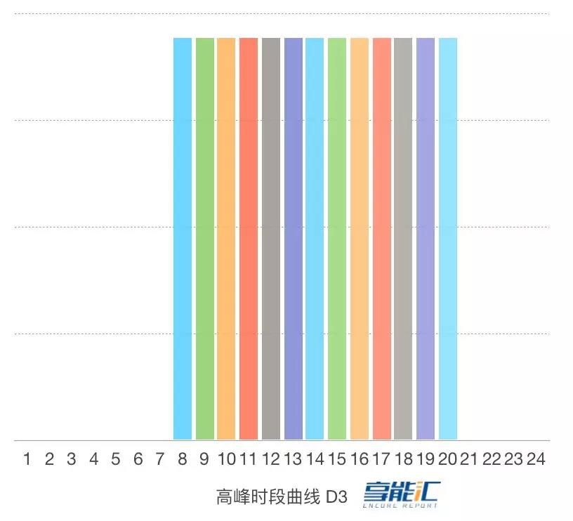 (圖)高峰時段曲線 D3:將日電量平均分解至每日峰段,平段、谷段為零,形成 24 小時電量曲線。