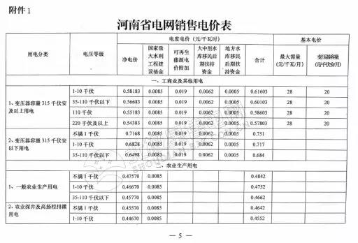 河南調(diào)電價:降低工商業(yè)及其他用電類別中單一制電價0.533分/千瓦時、0.5分/千瓦時