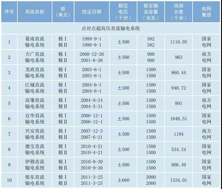 2017年在運直流輸電系統(tǒng)基本情況