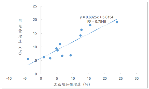 2018 年開年的用電量增速向好,從歷史數(shù)據(jù)分析來(lái)看, 1-4 月份用電量增速與工業(yè)增加值增速的相關(guān)度較強(qiáng),過去 10 年二者增速的決定系數(shù) R2 為 0.78。