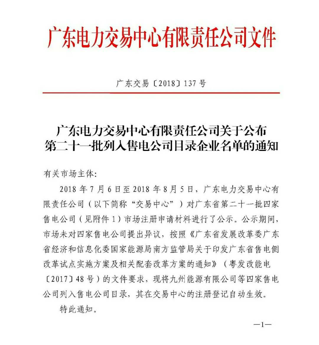 大云網(wǎng)訊:近日,廣東電力交易中心連續(xù)頒布三個關于售電公司的文件:一是公示了廣州知識城配電有限公司等2家準入申請;二是通過了第二十一批九州能源有限公司等4家售電公司公示;三是通告了七家售電公司7月份申請變更注冊的信息。