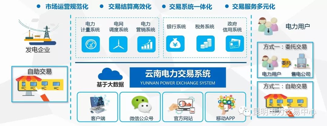 2014 年,南方電網(wǎng)云南公司配合政府相關(guān)部門探索組建了云南電力交易中心,準(zhǔn)確把握“公益性服務(wù)平臺”定位,聚焦電力交易服務(wù)能力的持續(xù)提升,形成了1個電力運(yùn)行與交易平臺;購電、售電2 類主體;省內(nèi)、西電東送、清潔能源3 個市場;雙邊協(xié)商、集中撮合、自主掛牌、合約轉(zhuǎn)讓4 種交易模式。2016 年8 月25 日,在云南電力交易中心成功試點(diǎn)的基礎(chǔ)上,正式掛牌成立昆明電力交易中心,成為全國第一家由電網(wǎng)企業(yè)相對控股的公司制電力交易機(jī)構(gòu),股東涵蓋電網(wǎng)企業(yè)、發(fā)電企業(yè)、電力用戶、地方電力企業(yè)等各類主體。