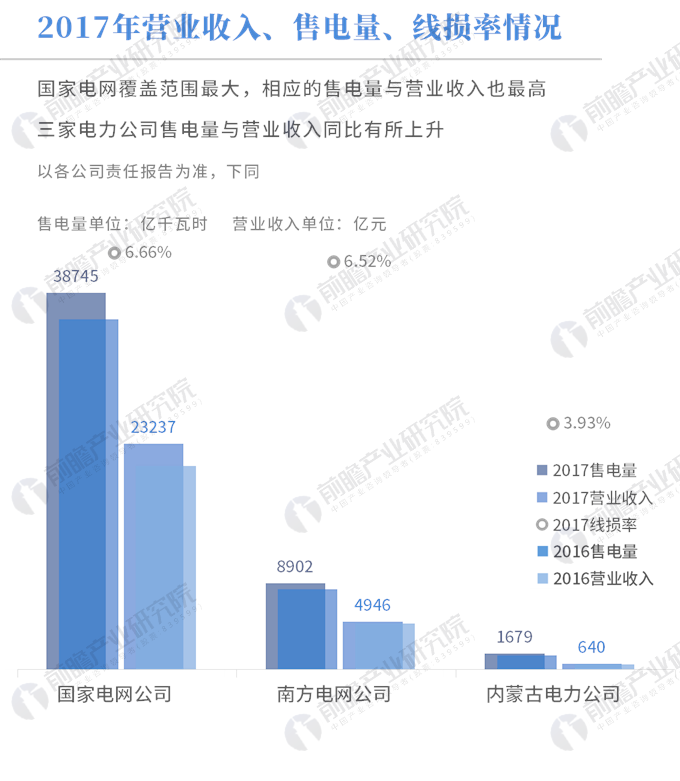 2017年全國(guó)平均電力價(jià)格同比下降0.93%,各大電力公司購(gòu)銷差價(jià)降低。在供電量與營(yíng)業(yè)收入方面,都處于上升趨勢(shì)。