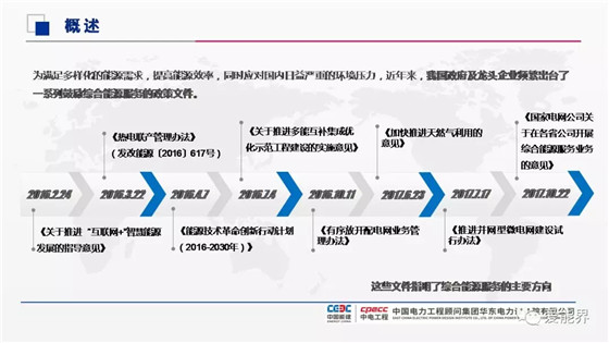 為滿足多樣化的能源需求,提高能源效率,同時(shí)應(yīng)用國內(nèi)日益嚴(yán)重的環(huán)境壓力,近年來,我國政府及龍頭企業(yè)出臺(tái)了一系列綜合能源服務(wù)的政策文件。