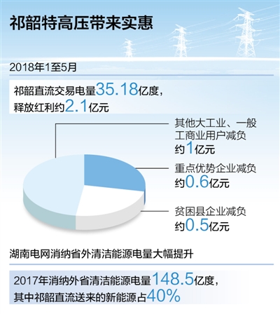 “今年除了上述企業(yè)外,參與電力市場化交易的其他電力用戶,也能享受祁韶每度電便宜1分錢的普惠。”劉勇介紹,2018年1至5月,祁韶直流交易電量35.18億度,釋放紅利約2.1億元,重點優(yōu)勢企業(yè)通過跨省購電交易減負約0.6億元;參與交易的貧困縣企業(yè)已增至573家,減負約0.5億元;其他參與交易的大工業(yè)、一般工商業(yè)用戶減負約1億元。