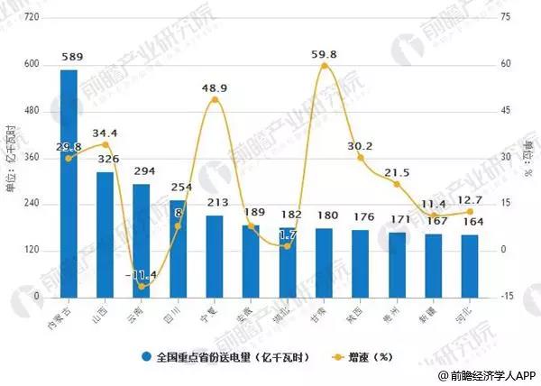 1-4月份,全國各省送出電量合計3628億千瓦時,同比增長21.8%。其中,內(nèi)蒙古送出電量589億千瓦時,同比增長29.8%;山西送出電量326億千瓦時,同比增長34.4%;云南送出電量294億千瓦時,同比下降11.4%;四川送出電量254億千瓦時,同比增長8.0%;寧夏送出電量213億千瓦時,同比增長48.9%;安徽送出電量189億千瓦時,同比增長8.0%;湖北送出電量182億千瓦時,同比增長1.7%;甘肅送出電量180億千瓦時,同比增長59.8%;陜西送出電量176億千瓦時,同比增長30.2%;貴州送出電量171億千瓦時,同比增長21.5%;新疆送出電量167億千瓦時,同比增長11.4%;河北送出電量164億千瓦時,同比增長12.7%。