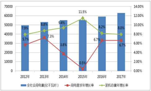 2012-2017年全社會(huì)用電量變化
