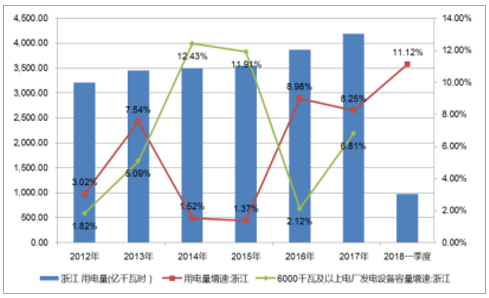 浙江省用電量及裝機(jī)量變化