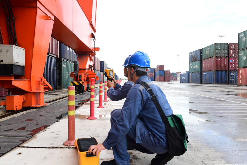 南方電網(wǎng)廣西電網(wǎng)公司工作人員給廣西欽州祥龍物流園的用電設(shè)備進(jìn)行測溫。