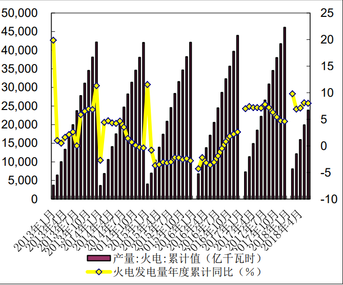 圖 2 火電累計(jì)發(fā)電量及累計(jì)同比