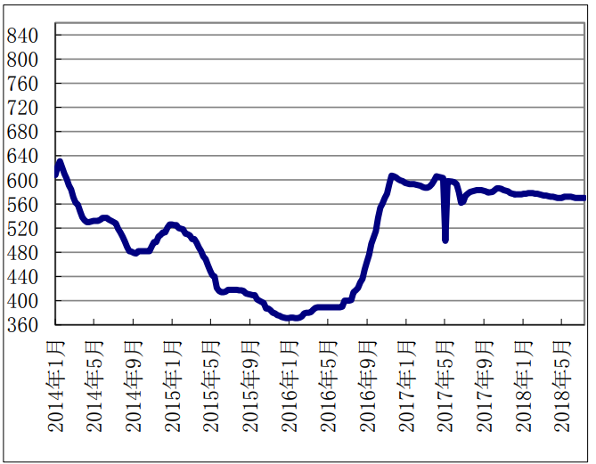 圖 14 環(huán)渤海動(dòng)力煤價(jià)格指數(shù)(Q5500K) 單位:元/噸
