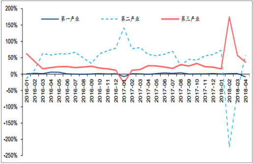 根據(jù)國家能源局統(tǒng)計數(shù)據(jù),2018年1-4月份,分產(chǎn)業(yè)來各個部分用電情況如下: