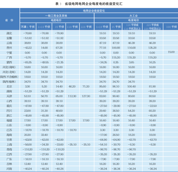為了方便比較標桿電價統(tǒng)一采用火電的標桿電價,現(xiàn)將已公布輸配電價省份的電網(wǎng)企業(yè)每度電的收益變化匯總如表 3。