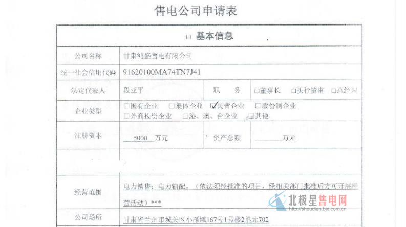 關(guān)于甘肅鴻盛售電有限公司注冊(cè)成為電力自主交易市場(chǎng)主體相關(guān)信息的公示