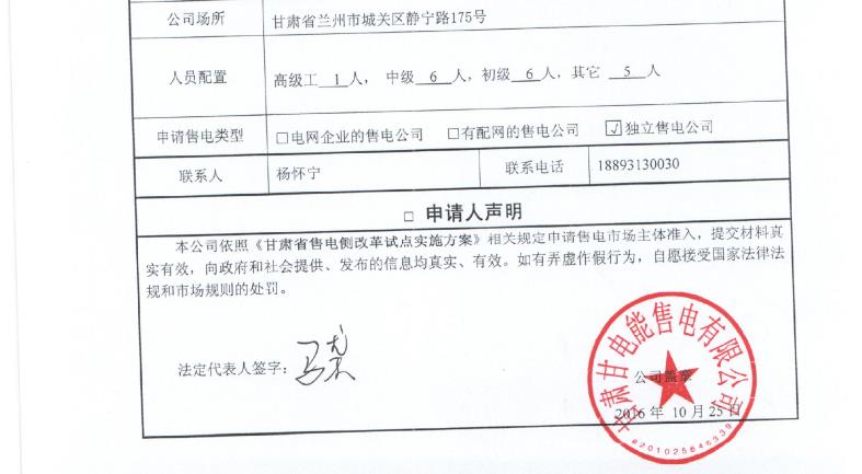 關于甘肅甘電能售電有限公司注冊成為電力自主交易市場主體相關信息的公示