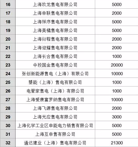 現(xiàn)已公布的上海售電公司名單如下,絕大多數(shù)公司注冊資本在1000萬元以上。