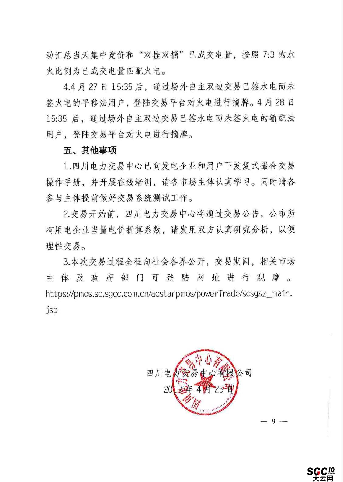 附:四川電力交易中心《關(guān)于開展2017年度直購電平臺復(fù)試撮合交易的公告》原文: