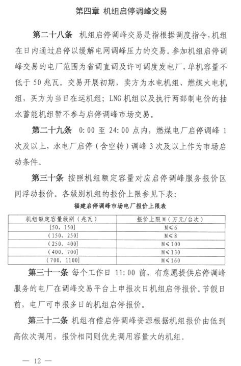 國家能源局福建監(jiān)管辦日前印發(fā)了《福建省電力輔助服務(wù)(調(diào)峰)交易規(guī)則(試行)》。規(guī)則試行于福建省電網(wǎng)開展的電力輔助服務(wù)(調(diào)峰)交易。本規(guī)則與《華東區(qū)域并網(wǎng)機組輔助服務(wù)管理實施細則》相銜接,不重復(fù)考核或