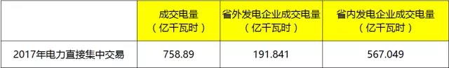 2017全國各省電力交易情況匯總