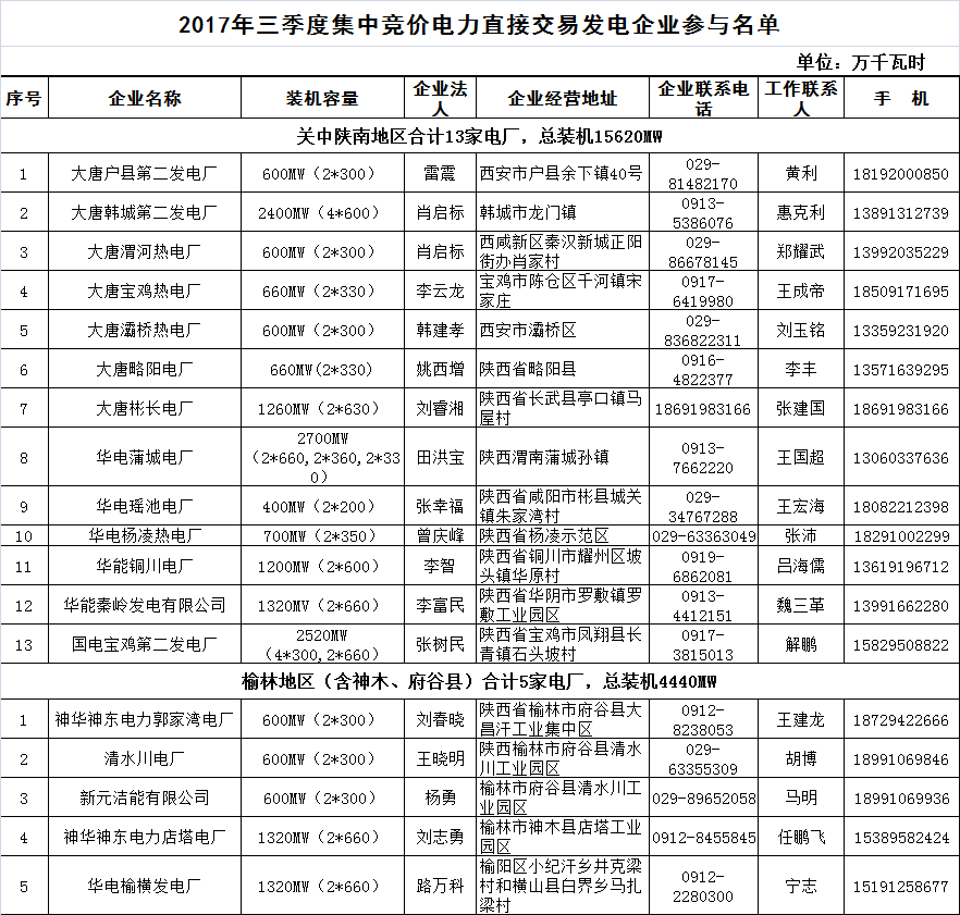 陜西10日開展2017下半年電力用戶和發(fā)電企業(yè)自主協(xié)商模式第二期電力直接交易(附成交清單表)
