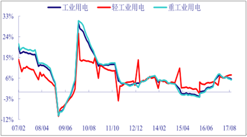 當(dāng)月輕、重工業(yè)用電量增速情況