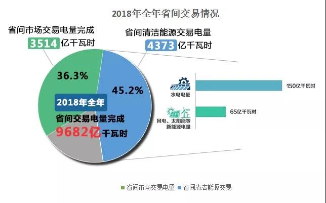 2018年全年的省間交易其中,省間市場交易電量完成3514億千瓦時(shí),同比增長29.0%,占省間交易電量的36.3%;省間清潔能源交易電量完成4373億千瓦時(shí),同比增長7.1%,占省間交易電量的45.2%。其中,水電電量3101億千瓦時(shí),同比基本持平;風(fēng)電、太陽能等新能源電量718億千瓦時(shí),同比增長45.8%。開展省間清潔能源交易,累計(jì)減少標(biāo)煤燃燒13994萬噸,減少二氧化碳排放34880萬噸。