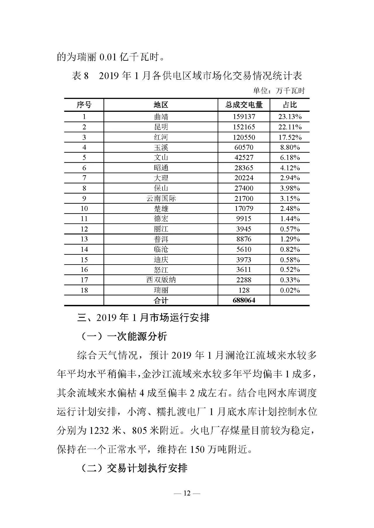 昆明電力交易中心發(fā)布了《云南電力交易月報(bào)(2019年1月)》