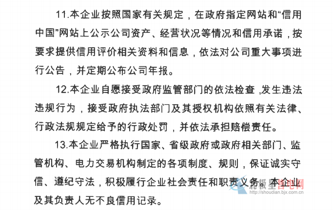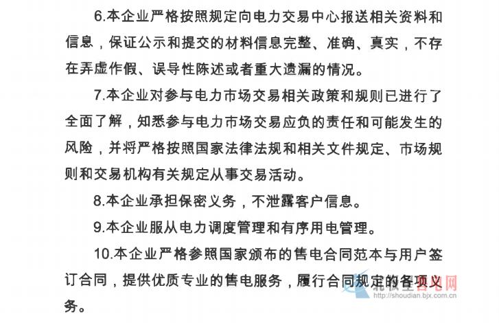售電公司信用承諾書(shū)示例: