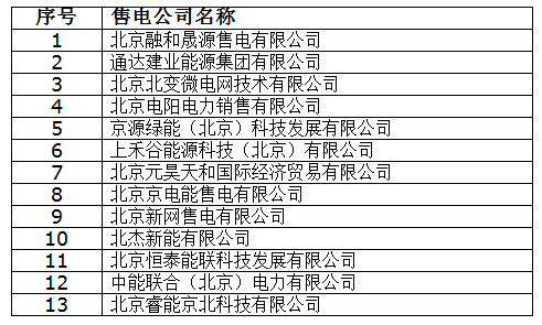 公示期間,任何單位和個(gè)人如有異議,可通過(guò)來(lái)電、來(lái)信、來(lái)訪(fǎng)等方式向北京電力交易中心實(shí)名反映。本次公示售電公司目錄如下: