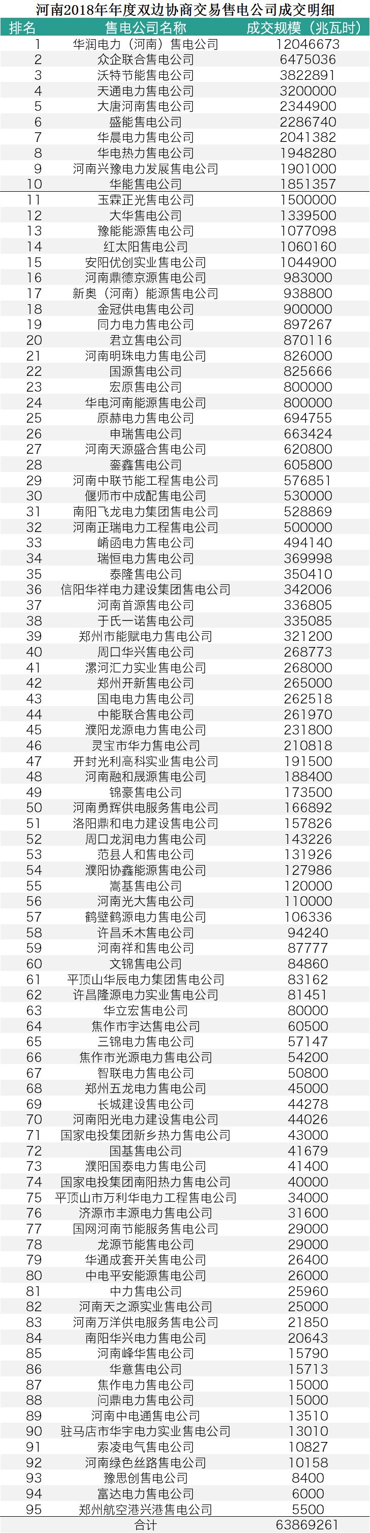 晶見將繼續(xù)關(guān)注河南市場。老規(guī)矩,附上河南2018年年度雙邊協(xié)商交易數(shù)據(jù):