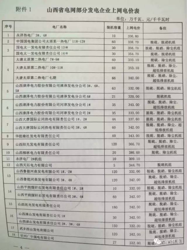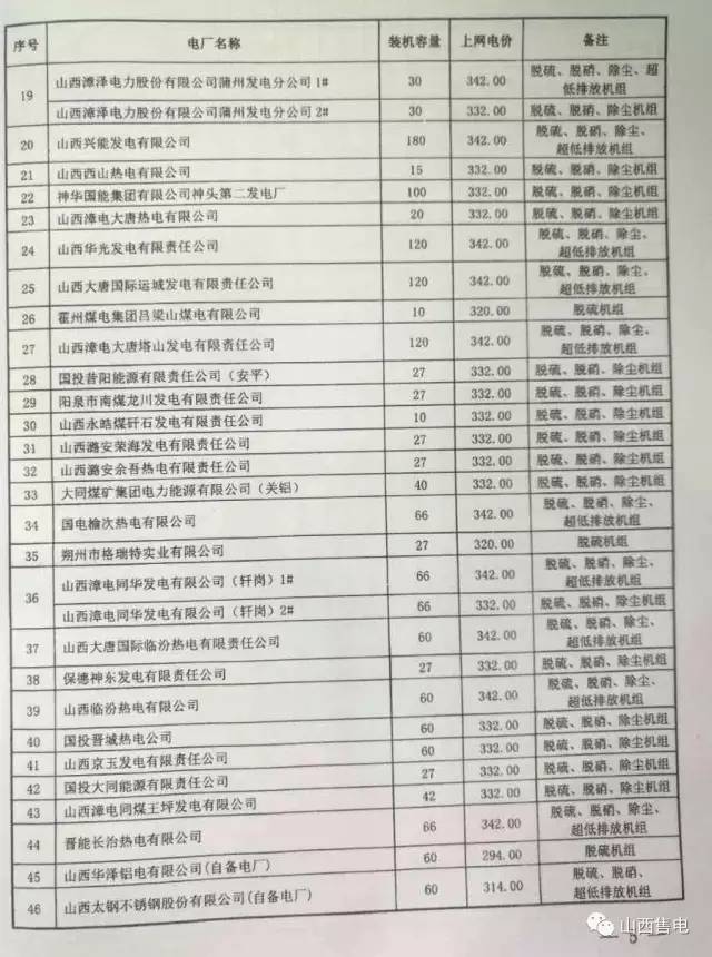 1.山西燃煤發(fā)電機(jī)組標(biāo)桿上網(wǎng)電價(jià)提高1.15分/千瓦時(shí),提高后燃煤機(jī)組標(biāo)桿上網(wǎng)電價(jià)為0.332元/千瓦時(shí)。