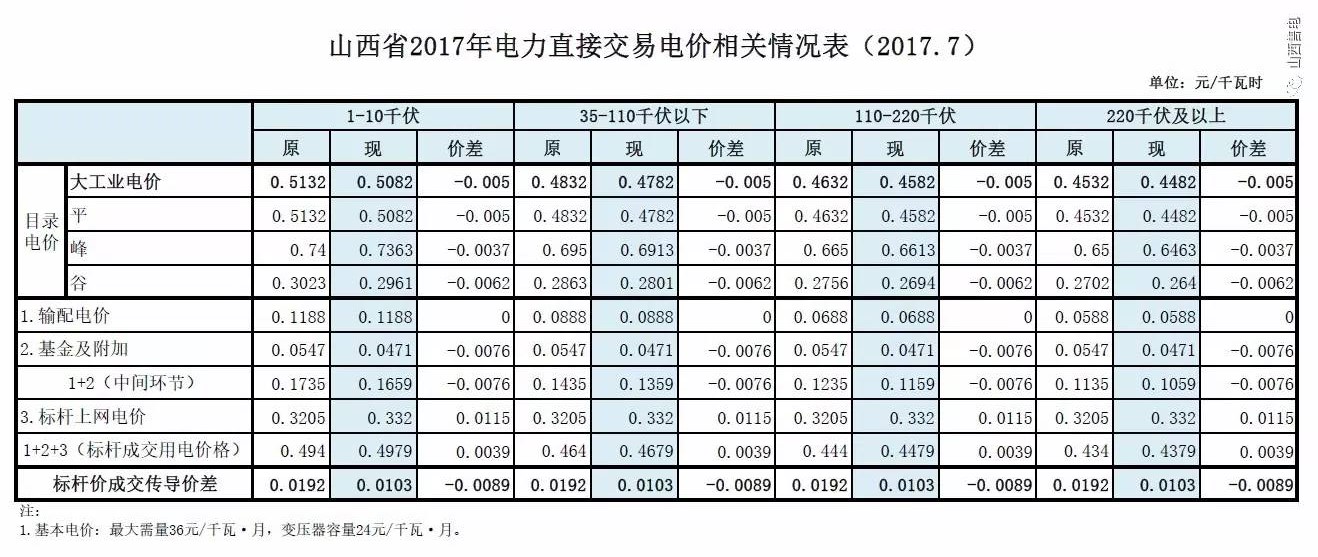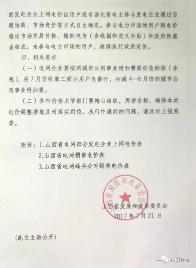 2.從7月1日起,山西大工業(yè)用電價(jià)格降低0.5分/千瓦時(shí)、一般工商業(yè)用電降低1.2分/千瓦時(shí)。