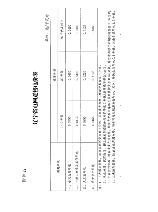 遼寧省燃煤發(fā)電標(biāo)桿上網(wǎng)電價(jià)每千瓦時(shí)提高0.0064元,調(diào)整后燃煤機(jī)組標(biāo)桿上網(wǎng)電價(jià)為每千瓦時(shí)0.3749元(含脫硫、脫硝、除塵)。未安裝脫硫、脫硝和除塵設(shè)施的,按標(biāo)桿上網(wǎng)電價(jià)每千瓦時(shí)分別下調(diào)1.5分、1分和0.2分。