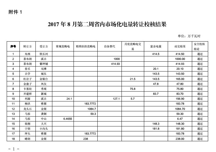 四川8月第二周市場(chǎng)合同電量轉(zhuǎn)讓結(jié)果 省內(nèi)成交電量8503.2萬(wàn)千瓦時(shí)